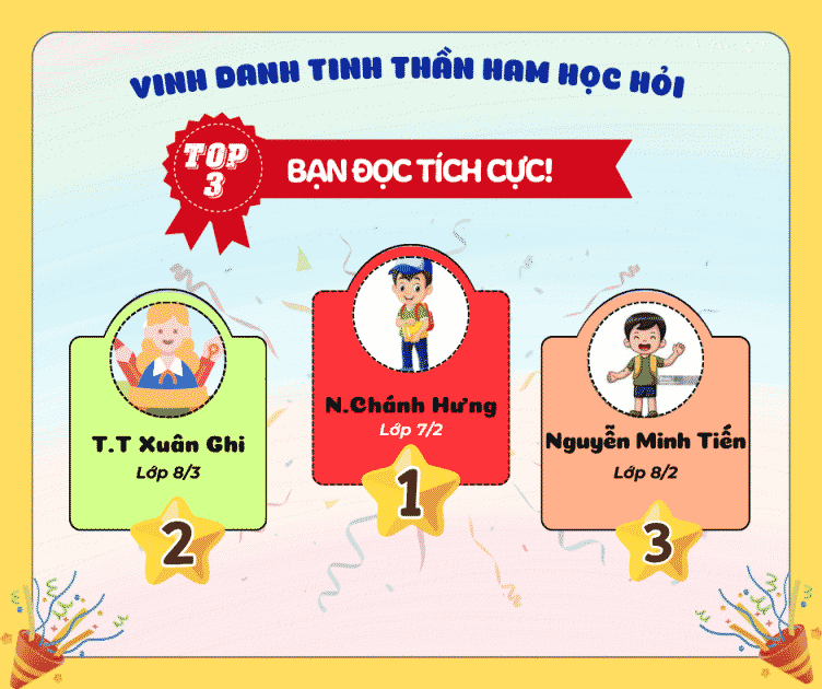 Trong tháng 3, ba em học sinh có thành tích nổi bật gồm: